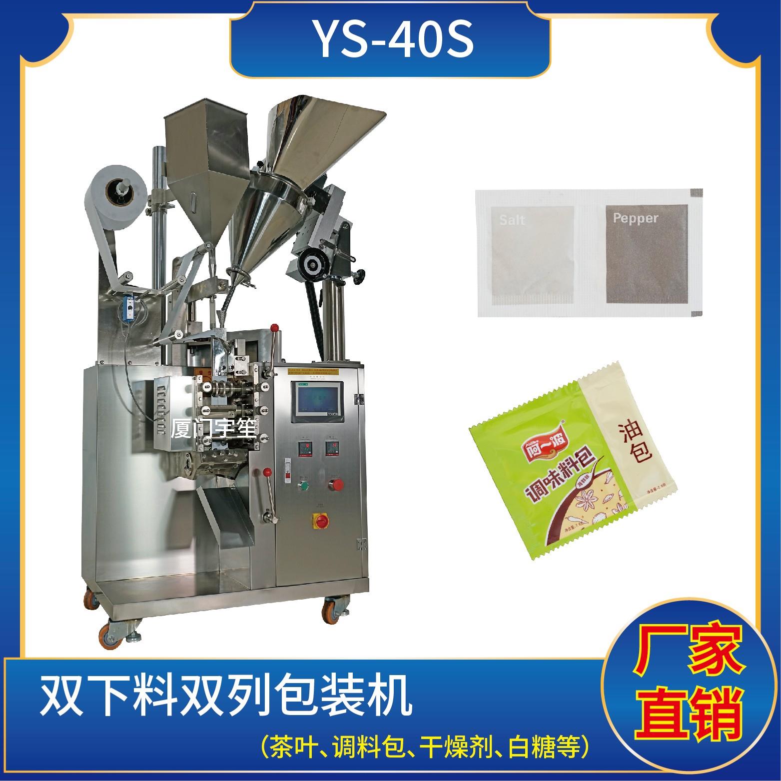 YS-40AK 三邊封顆粒自動(dòng)包裝機(jī)特 點(diǎn) 1、適用于方便面行業(yè)湯包,干燥劑,沖劑,碎茶等小顆粒狀物品包裝。2、可自動(dòng)完成制袋、計(jì)量、充填、封合、分切及計(jì)數(shù)等功能。3、包裝材料:茶葉濾紙、復(fù)合膜、無紡布。 封口方式:三邊封技術(shù)參數(shù) 計(jì)量范圍:10 - 40 g(0.6 ~ 33 ml)制袋尺寸:長(zhǎng) ( L ) : 40 - 110 mm …