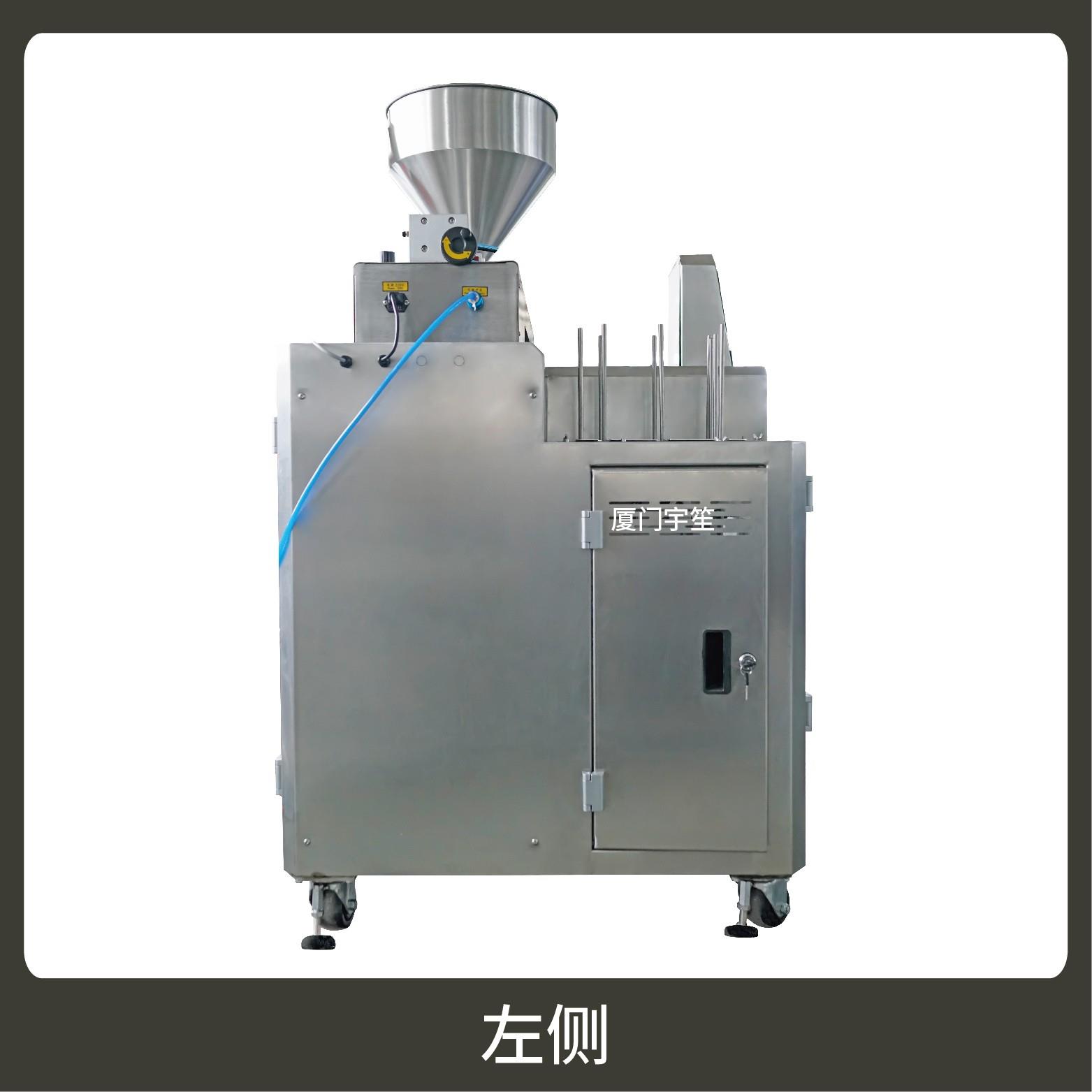 2、調(diào)試方便、占用空間小。包裝流程全自動,無需人工操作??筛鶕?jù)充填物料的性質(zhì)選配不同的下料結(jié)構(gòu)。
