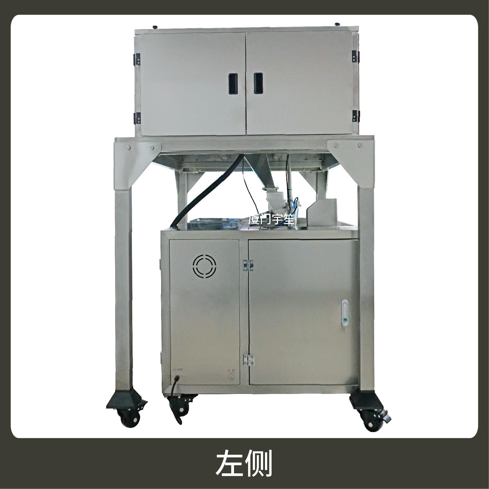 2、適用站立袋、包裝流程全自動、無需人工操作。可根據(jù)充填物料的性質(zhì)選配不同的下料結(jié)構(gòu)